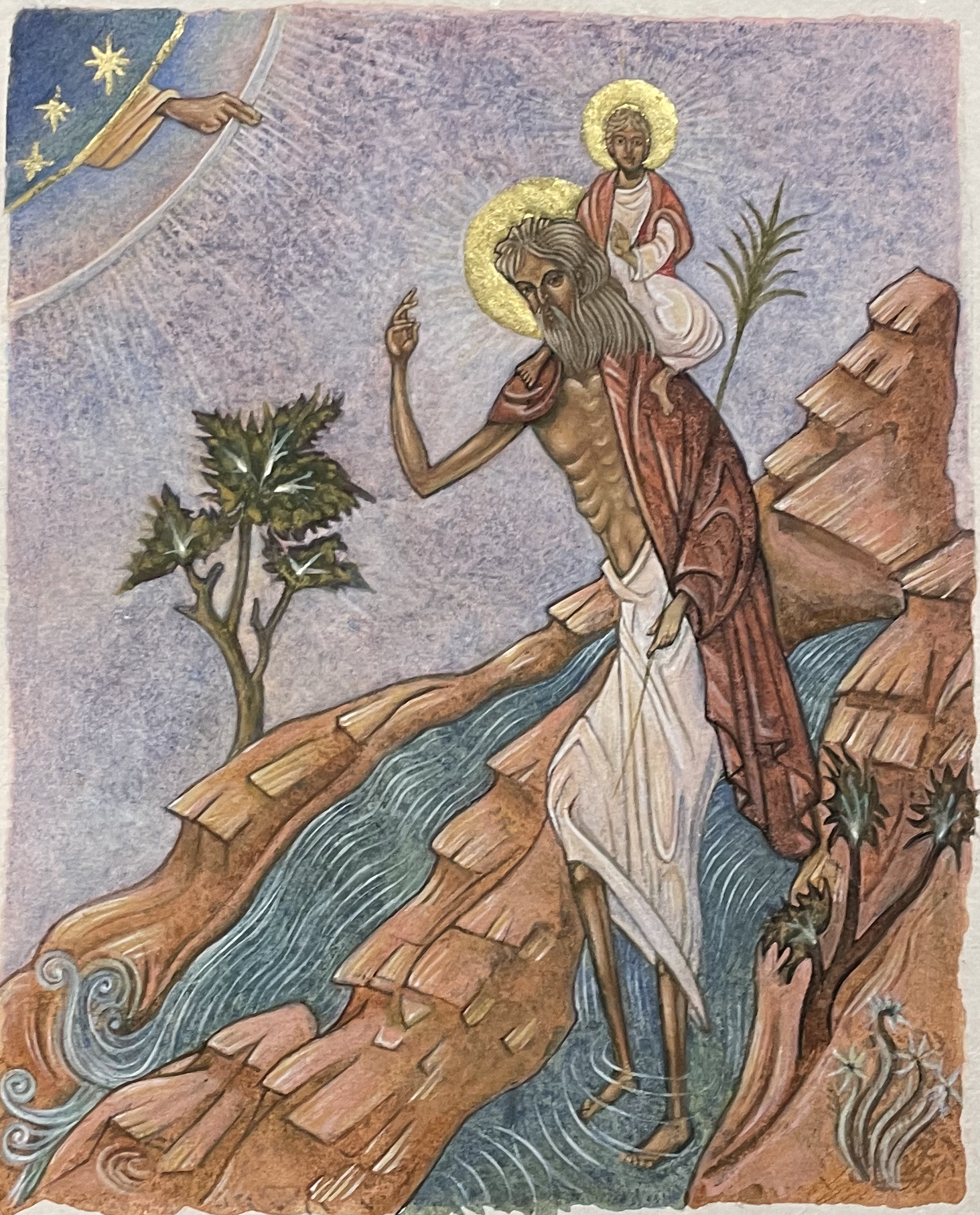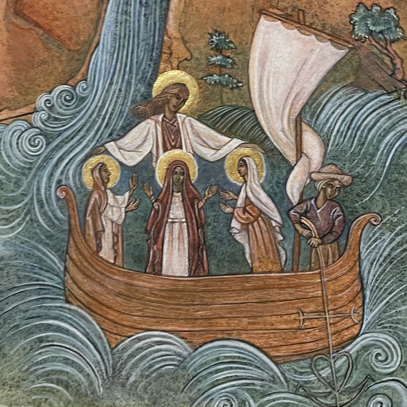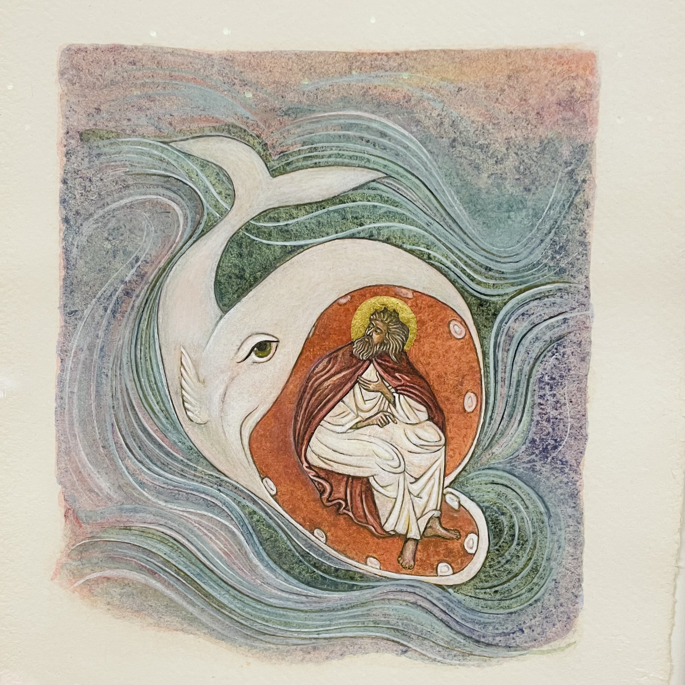 If the original purpose of icons was worship, but also education, Ehrlich’s icons fill the same void. They can and should be admired as art, but they also remind us of stories we once knew and have forgotten, or stories we never knew at all. These saints of the sea include stella maris, St Nicolas, and the patron saint of whales.